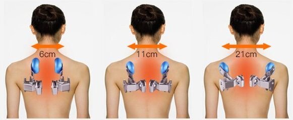 Za masažu tapkanjem, shiatsuom i gnječenjem, širina masažnih valjaka može se podesiti na tri razine: široka, srednja i uska. Širina se može podesiti između 2,5 cm i 21 cm, s tri opcije.