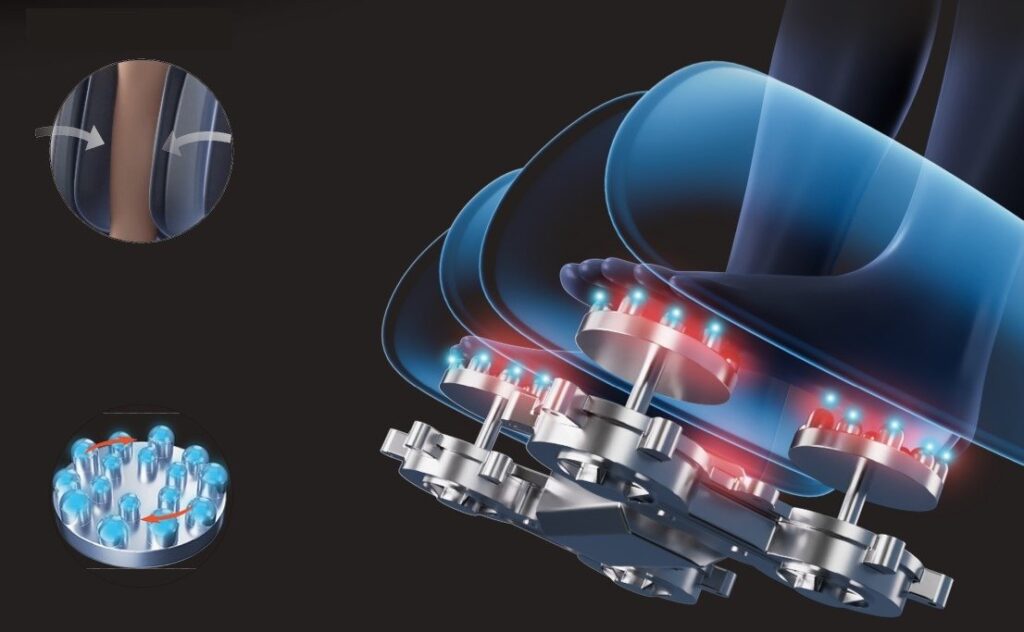 Masaža tabana valjcima i masaža stopala zračnim jastukom.