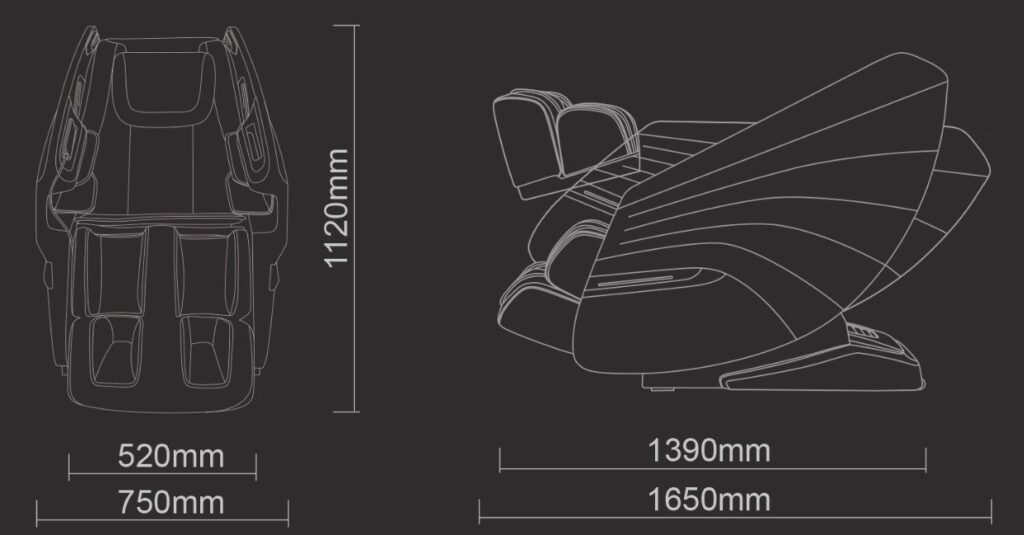 Korištenjem NASA tehnologije, ovaj položaj smanjuje pritisak na tijelo i može vas opustiti. Položaj pozitivno utječe na zdravlje leđa. U ovom slučaju, bedra i listovi nalaze se više od srca. Gravitacija svakog dijela tijela ravnomjerno je raspoređena na masažnoj stolici, čime se potpuno oslobađa pritisak na tijelo i kralježnicu. Nudi vam bestežinskog stanje koje pomaže da se opustite, napunite baterijama i odmorite. Dostupna su 3 položaja: polusjedeći, poluležeći, ležeći.