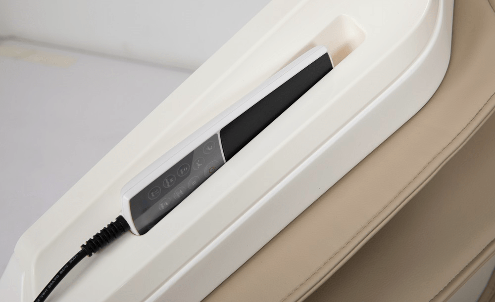 Ručni upravljač možemo pohraniti na jednu stranu masažne stolice, a telefon na drugu.