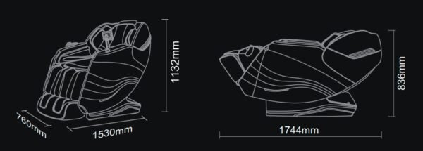 Masažni valjaci u stopalima za neponovljivi doživljaj, kombinirani sa zračnim jastucima za listove i stopala. Glazba, USB, povezivanje sa mobitelom, računalom, tabletom putem bluetooth-a, zero gravity, zero space, 18 automatskih i 10 ručnih modova masaže, cjelokupna i djelomična masaža, ciljana masaža, akupresurne točke, masaža gluteusa, refleksoterapija, S-shape, L-track, zračni jastuci,grijanje…