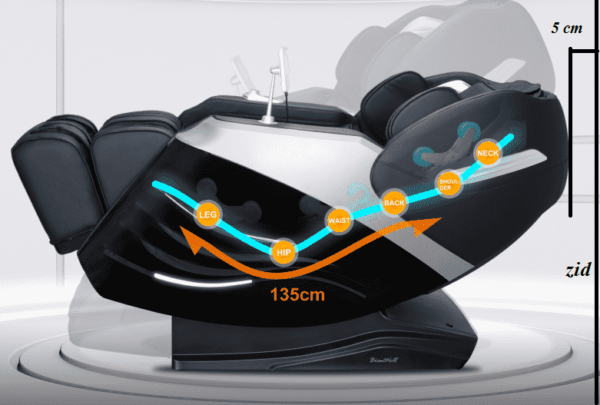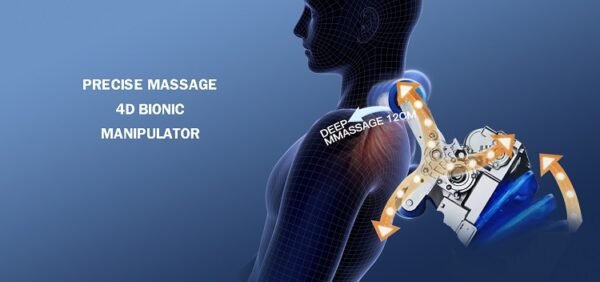 Masažna fotelja vrhunske kvalitete, sa najnovijim 4D BIONIC manipulatorom, koja ima masažu u leđima od vratno-ramenog dijela, preko cijelih leđa, lumbalnog dijela, stražnjice pa sve do bedara, u dužini od 135 cm!