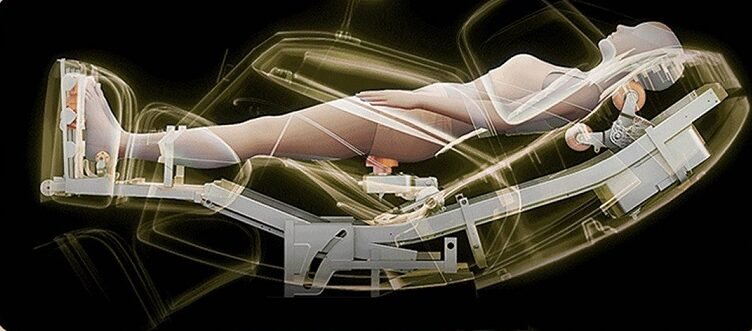 zračni jastuci fiksiraju ruke/ramena/noge, dok valjci “guraju” leđa radi istezanja.